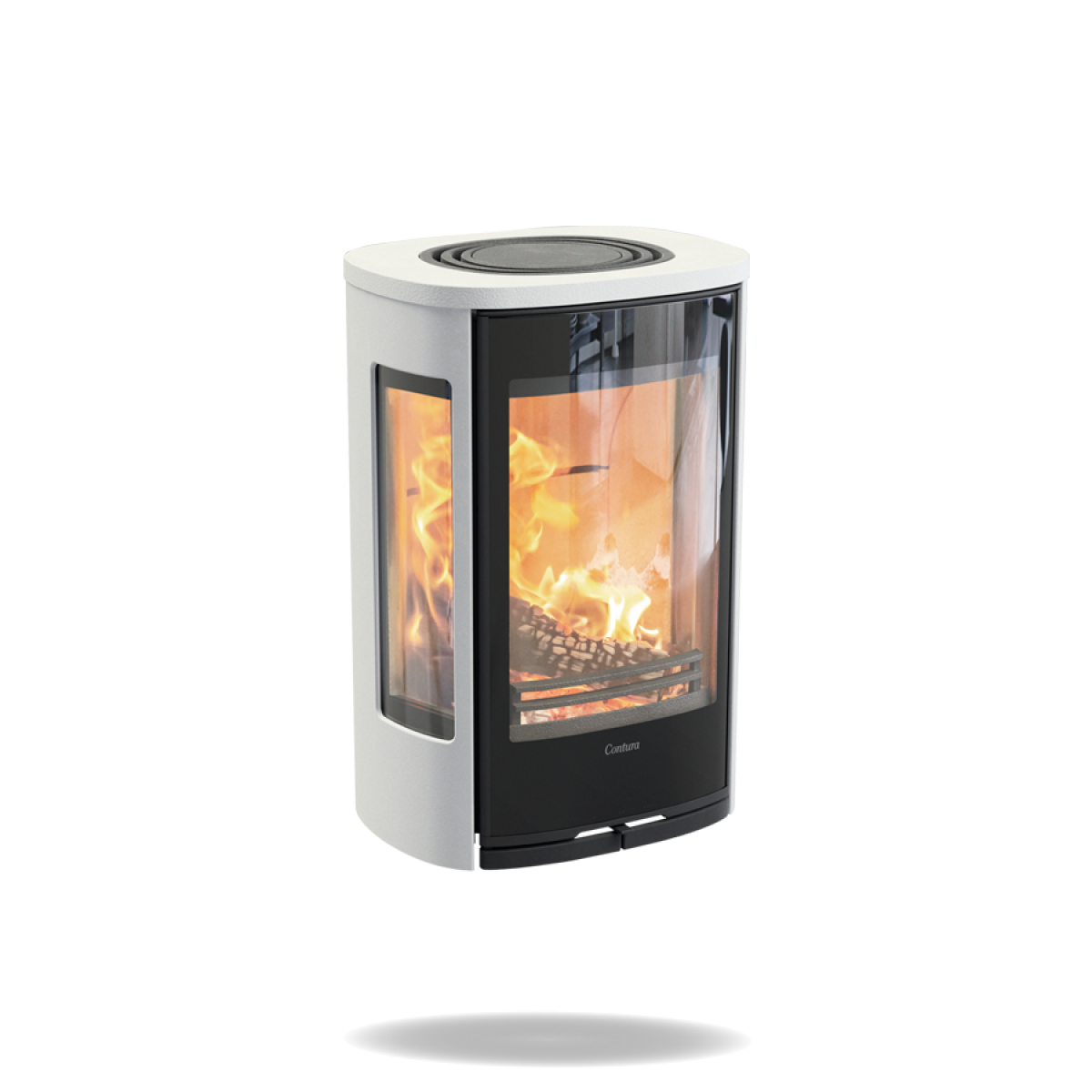 Contura 856.1GW Style, wit, wandmodel, glazen deur, aluminium bovenplaat